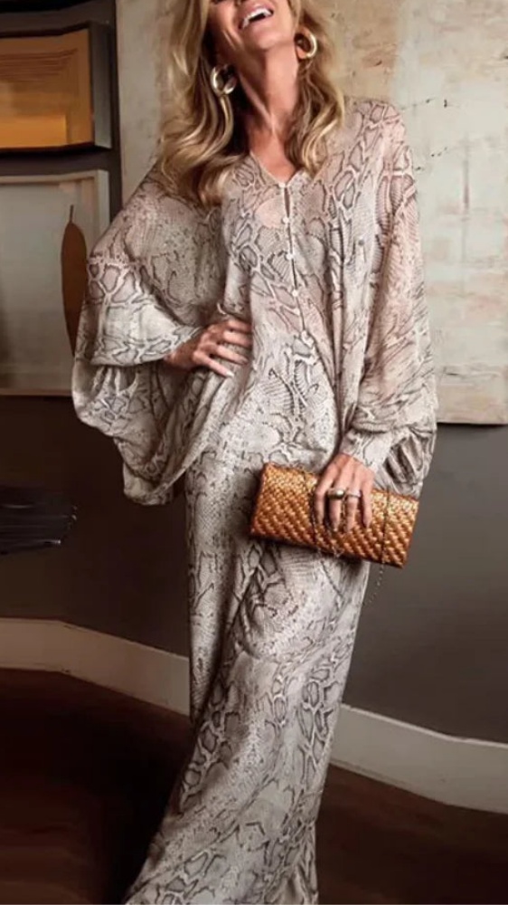🌿Serpentine-Print Light Luxury Casual Two-Piece Set